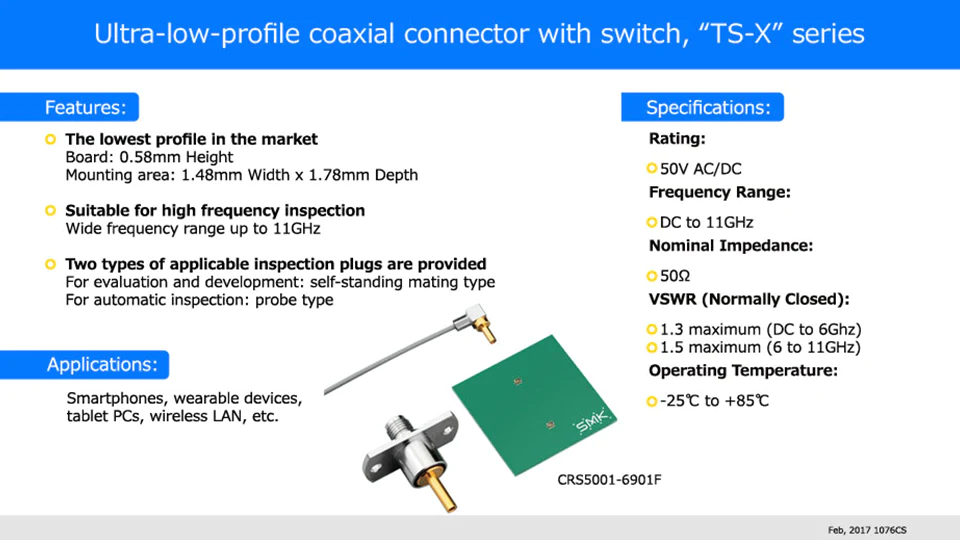 Ultra-Low-Profile Coaxial Connector with Switch, "TS-X" Series