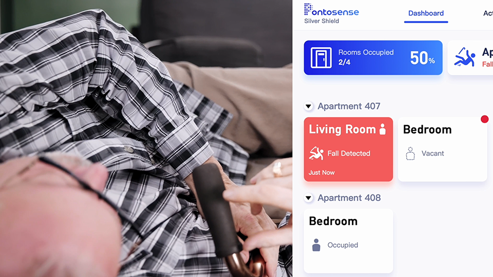By detecting the tenant’s presence and breathing and offering notifications regarding falls, it contributes toward reducing the number of hospital/care facility staff manhours for managing patients/tenants.