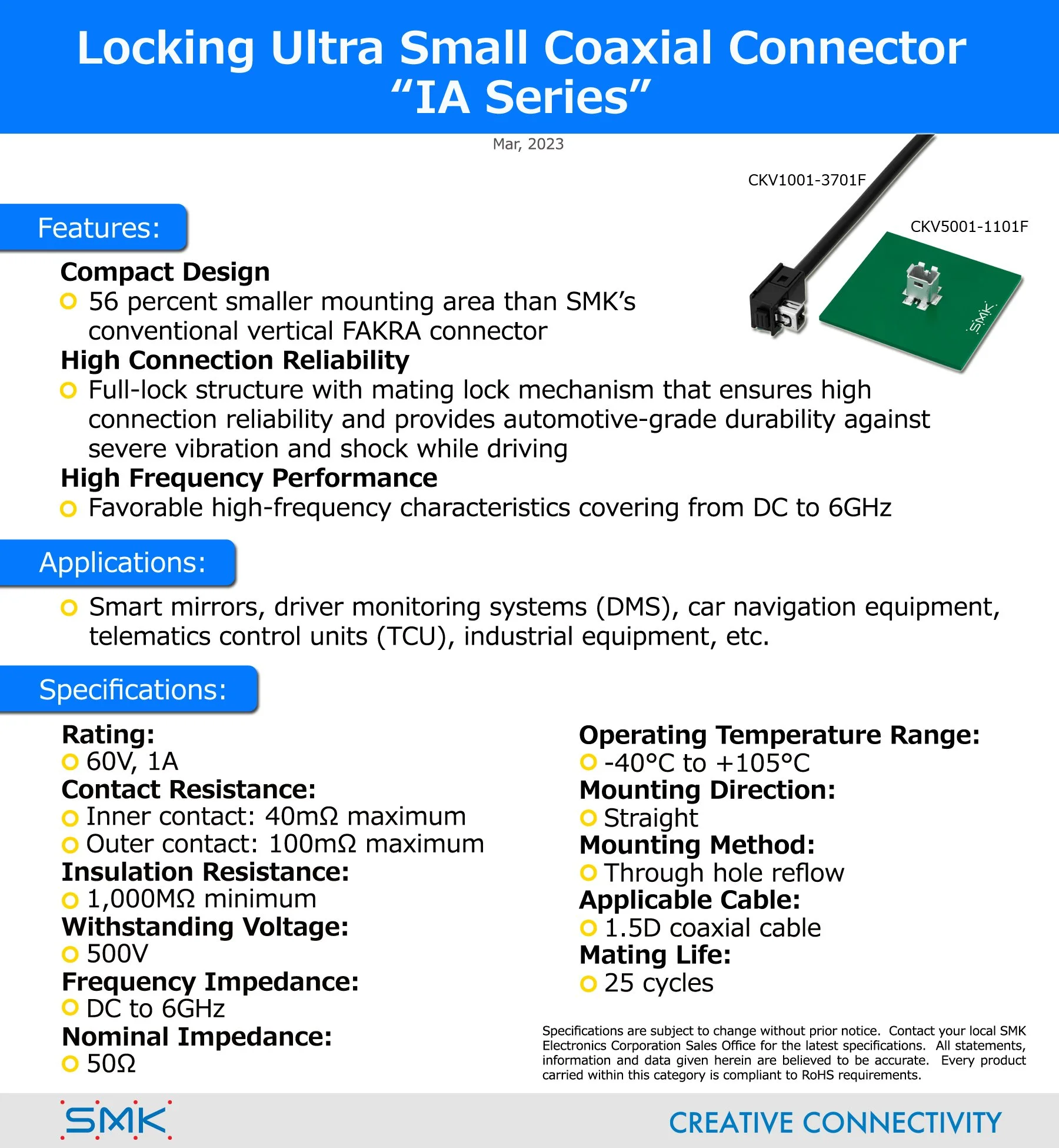 Locking Ultra Small Coaxial Connector "IA Series" Click the following link to view the full press release: “IA Series” SMK EuropeMarch 20, 2023 Facebook0 Twitter LinkedIn0 0 Likes