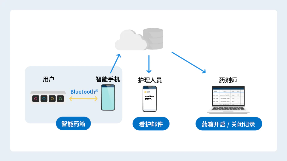 它结合了传感器技术、云端整合和提醒功能,不仅能够为用户提供服药支持,也使护理人员和药剂师能够实时监控服药情况。